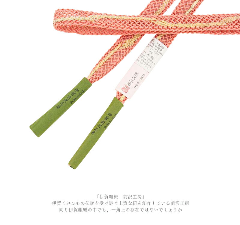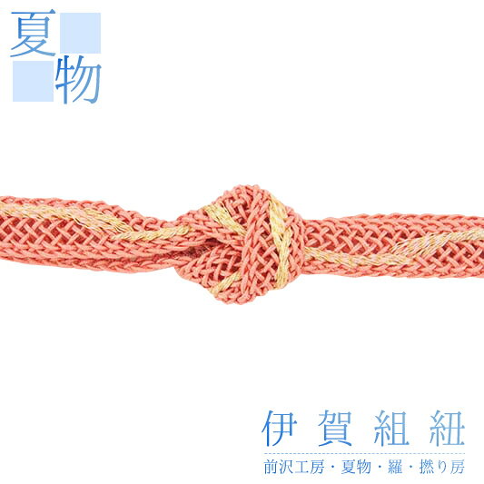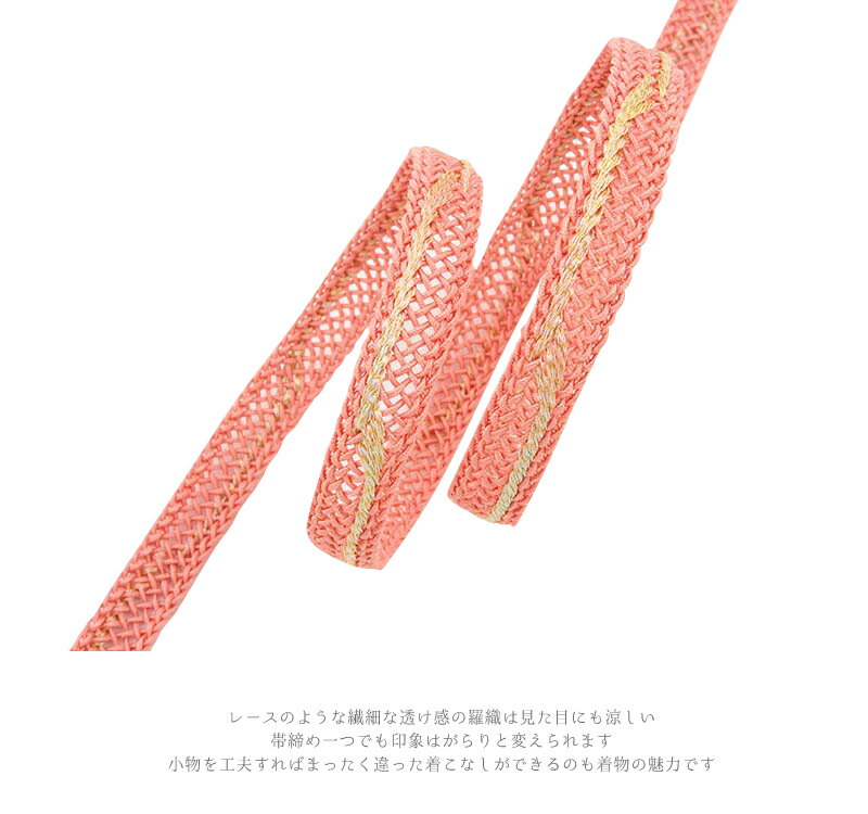 帯締め 夏物 伊賀組紐 ピンク 金 サーモンピンク 正絹 平組 レース 前沢工房 伊賀くみひも 新品 未使用 並尺 お洒落着 単衣 夏着物 浴衣 カジュアル フォーマル 礼装用 可愛い 大人 大人可愛い 上品 爽やか 涼しげ 夏 夏着物、単衣着物、浴衣 日本製 No.8-1765
