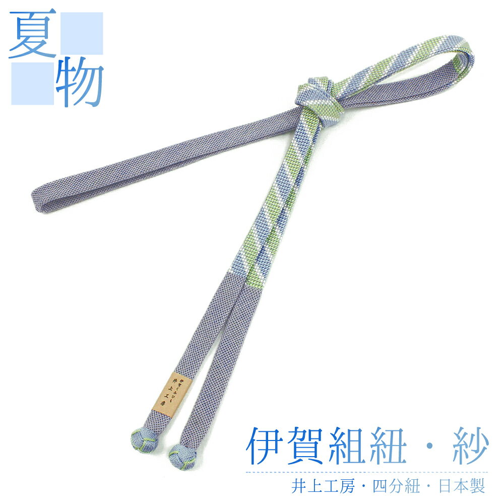 在庫処分 夏物 帯締め 紗 平組 ストライプ 縞 正絹 透かし 小田巻 伊賀組紐 井上工房 紫 黄緑 緑 水色 パープル カジュアル 洒落着用 単衣 夏着物 浴衣 並尺 涼しげ さわやか かわいい 粋 日本製 レース 羅 No.8-1580