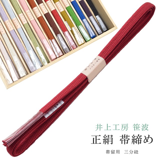 帯締め おびじめ 笹波 三分紐 帯留め用 着物 きもの 伊賀組紐 日本製 井上工房 25選 帯〆 1年中 伊賀くみひも 高級 帯じめ 浴衣 紬 小紋 色無地 訪問着 留袖 礼装用 カジュアル〜フォーマル 1 赤 sin7951-bob09 【新品】【着物ひととき】