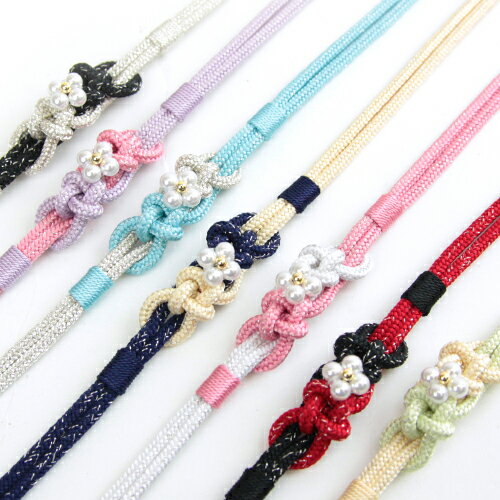 飾り紐 浴衣紐 浴衣用 帯締め 日本製 和装小物 和小物 きもの 着物 ゆかた パール ホワイト 白 ブラック 黒 水色 スカイブルー グリーン 緑