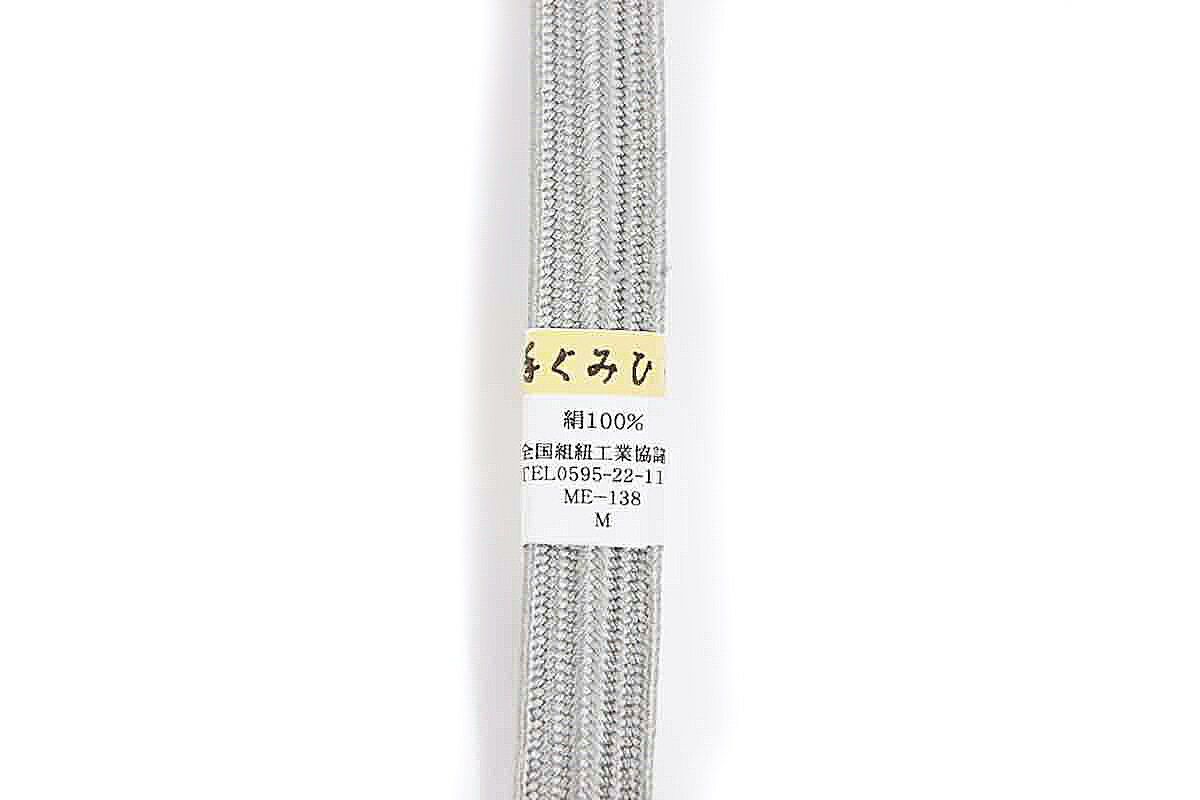 帯締め 夏物 伊賀組紐 グレー 正絹 平組 レース 前沢工房 新品 未使用 並尺 お洒落着 単衣 夏着物 浴衣 カジュアル No.8-0728